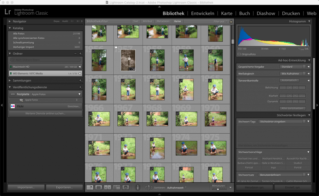 Aus Lightroom heraus exportiert man das fertige Bild in einen speziellen Ordner. Über ein kleines Automator-Programm werden diese Fotos dann in die Foto-Bibliothek von Apple übertragen.
