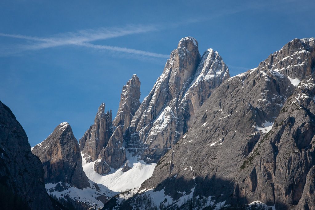 Zum Abschluss der Reise noch ein echter Geheimtipp: Besucht man den kleinen Ort „Moos“ kurz vor Sexten findet sich inmitten des Ortskerns ein kleines Schild mit der Aufschrift „Fischleintal“. Fährt man dort hinein in die Fischleintalstrasse, kommt man nach einigen Kilometern zu einem kleinen Parkplatz am Ende des Weges. Parkgebühr für eine Stunde 1.00 EUR oder eine Tageskarte für 7.00 EUR. Von hier aus hat man die Möglichkeit, bis zur Talschlusshütte zu wandern. Ein nicht allzu schwieriger Wanderweg, der jedoch an einem spektakulären Teil der Sextener Dolomiten vorbeiführt und wunderbare Ausblicke auf die Gipfel bietet.